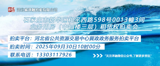 - 石家莊市新華區(qū)和平西路598號(hào)0013幢3間業(yè)務(wù)用房(中四樓三層)租賃權(quán)拍賣(mài)公告20250930